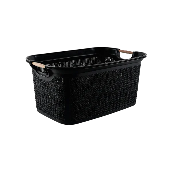 Tuffex 30L Black Laundry Basket with Wooden Hands