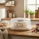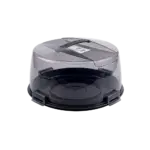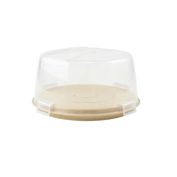 The clear lid allows full visibility of the cake while protecting it from dust and damage.