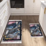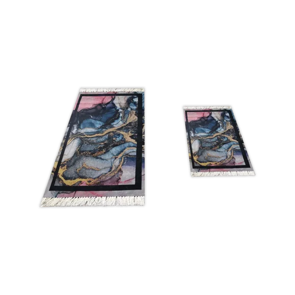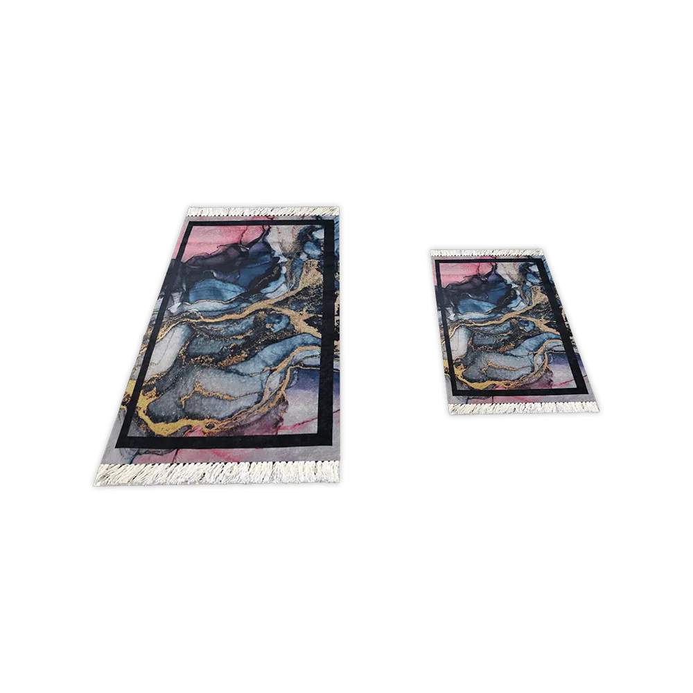Turkish 2Pcs Marble Design Carpet Set