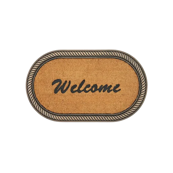 Welcome 75x45cm Oval Beige with Black Frame Straw Doormat
