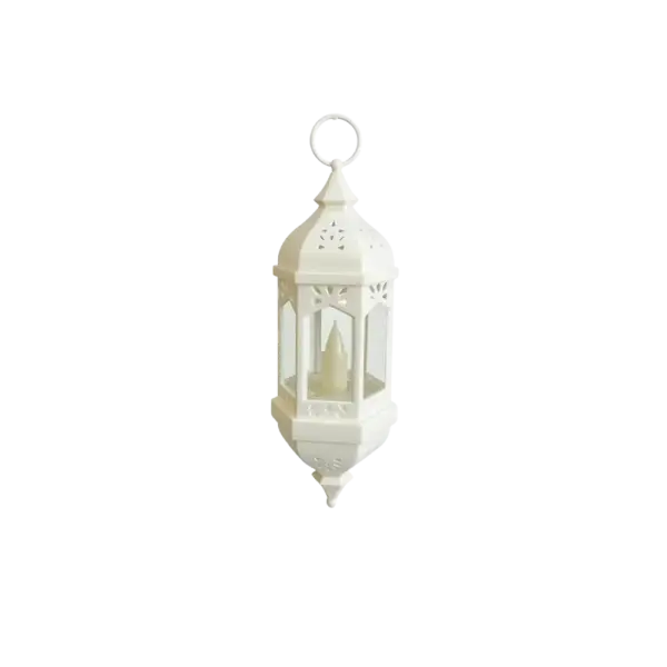 White 19cm Hanging Ramadan Lantern with LED Candle