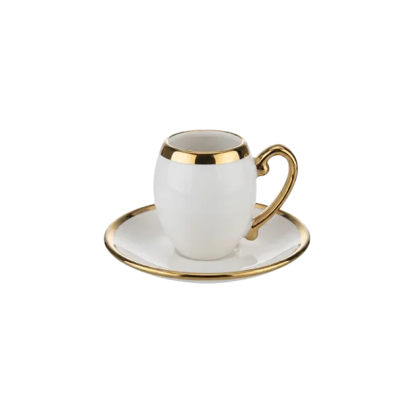 White & Gold Coffee Cups Set with Saucers-Luxury Gold Rim Design-12 Pieces-Professional Drinkware in lebanonطقم فناجين قهوة أبيض وذهبي مع صحون 12 قطعة