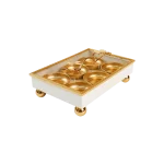Designed with stylish golden legs that elevate the tray for a premium presentation.