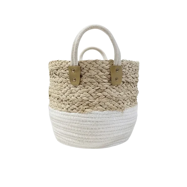 مزيج راقٍ بين القش الطبيعي في الأعلى واللون الأبيض في القاعدة لإطلالة عصرية نظيفة.