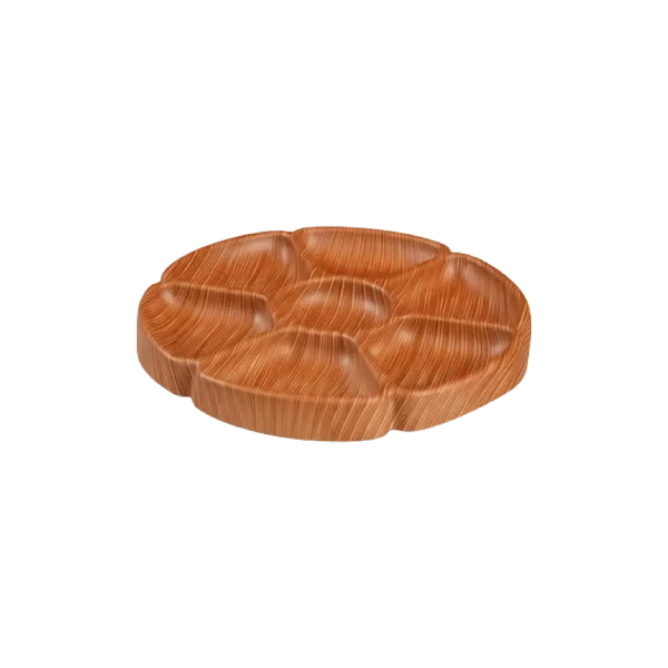 صينية تقديم بلاستيك بنقشة خشبية 6 أقسام