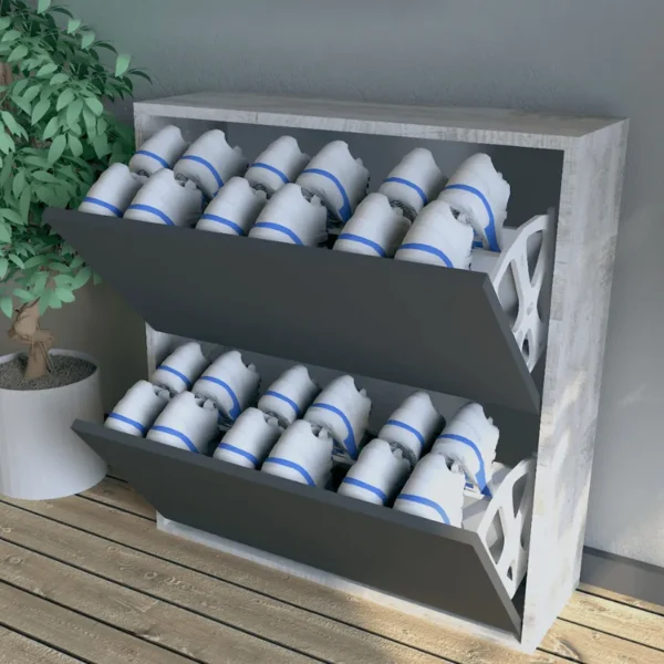 Wooden 2 Layers Shoes Closet White & Grey