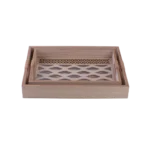 Wooden 2Pcs Coffee Pattern Round Trays Set