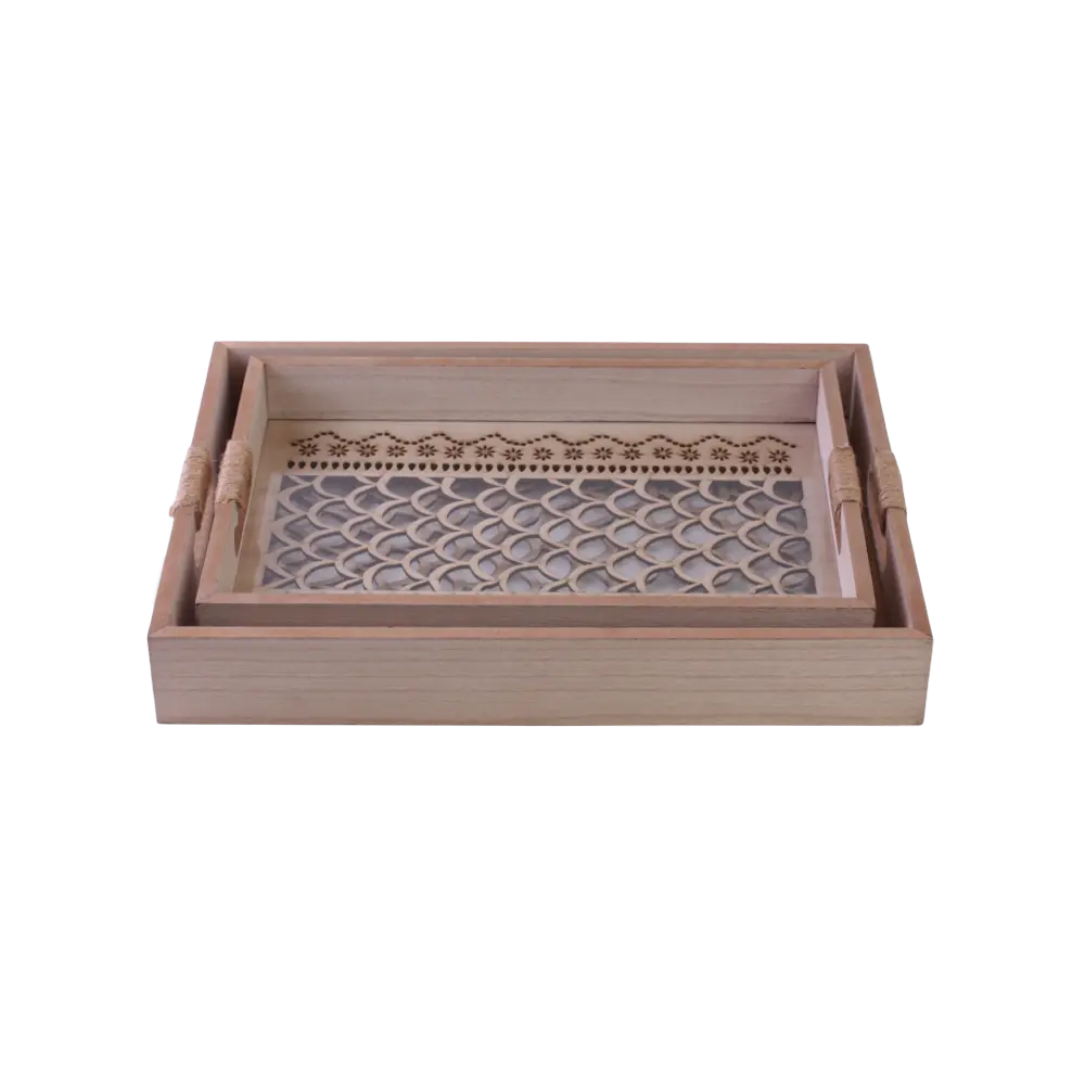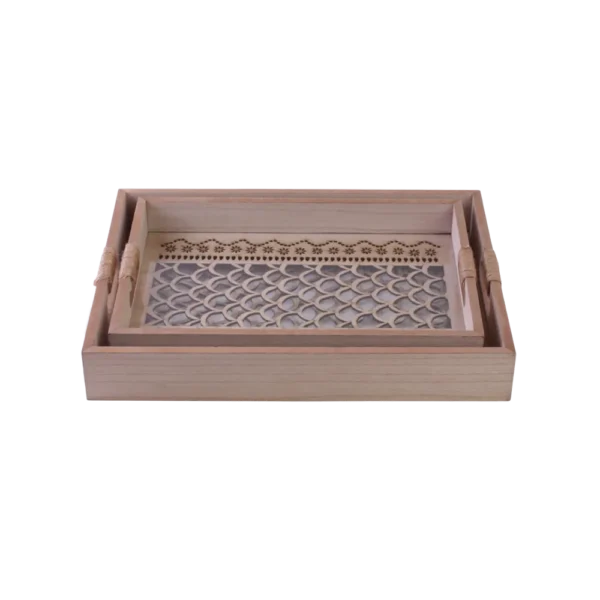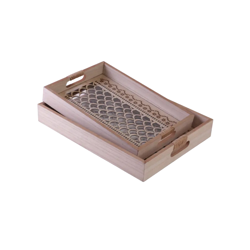 Wooden 2Pcs Moroccan Trellis Pattern Trays Set