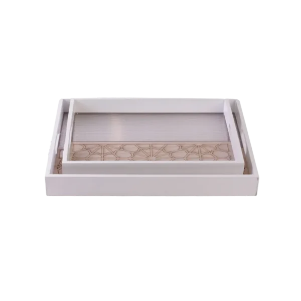 Includes one large and one medium tray for versatile use and easy nesting storage.