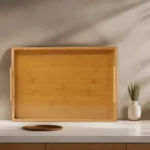 The tray’s natural bamboo finish exudes a warm and rustic charm that complements a wide range of interior styles, from modern to traditional.
