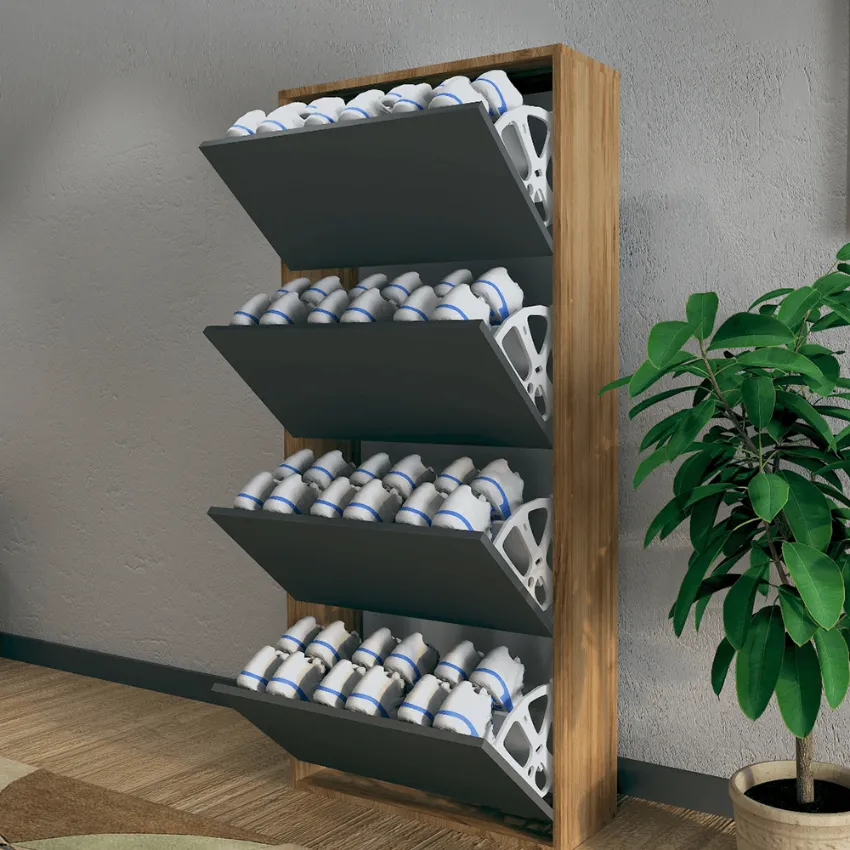 Wooden 4 Layers Shoes Closet Grey & Brown