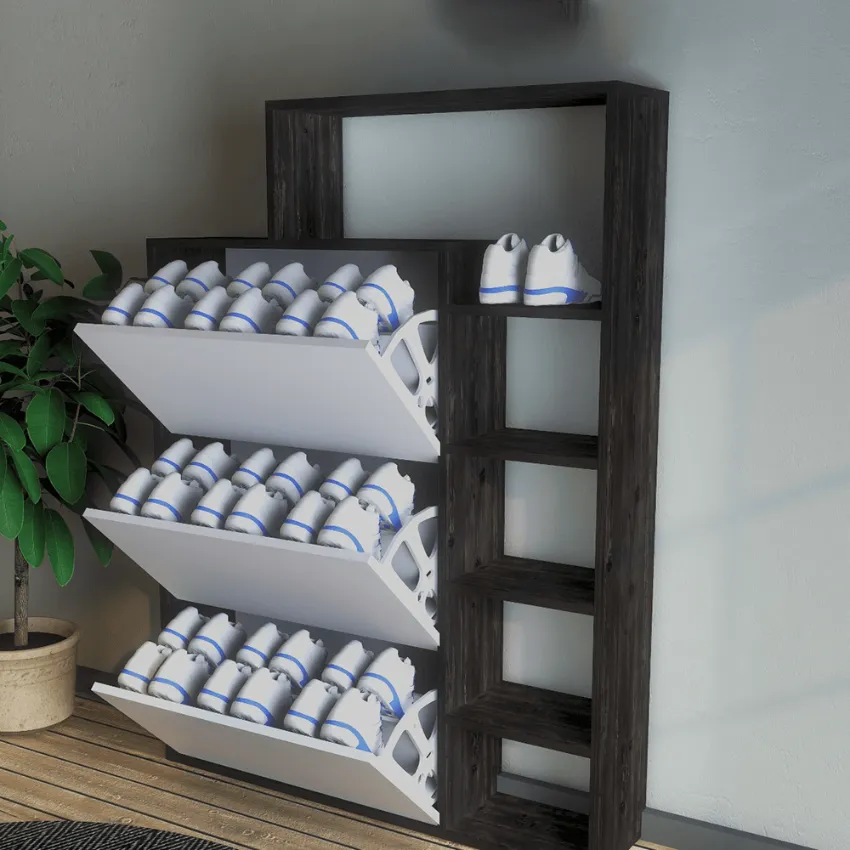 Wooden 5 Layers Black Closet with 3 Shoes Layers