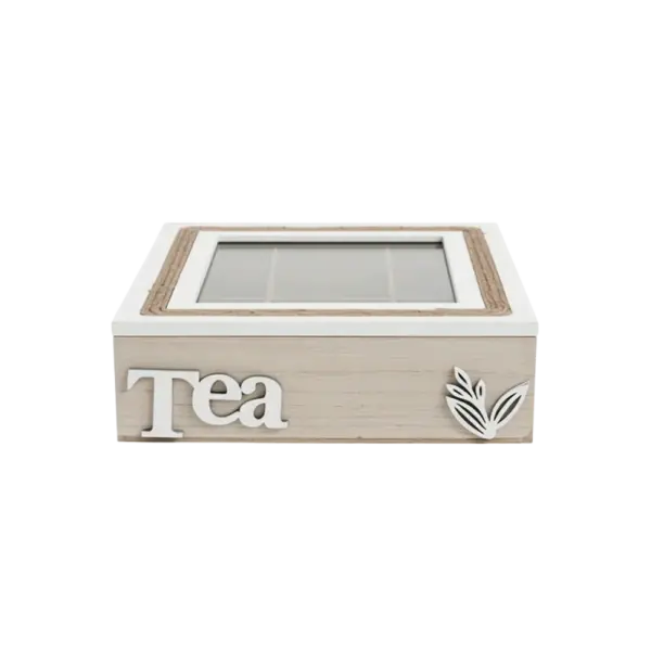 Wooden Divided 9pcs Tea Beige & White Organizer Box