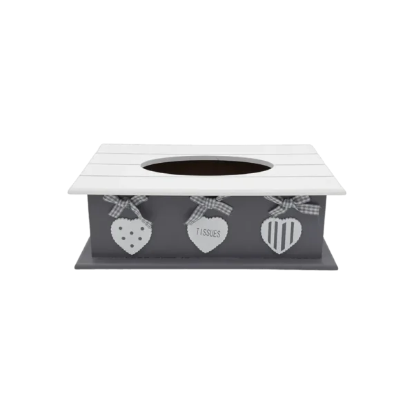 Wooden Grey Hearts Pattern Tissue Box