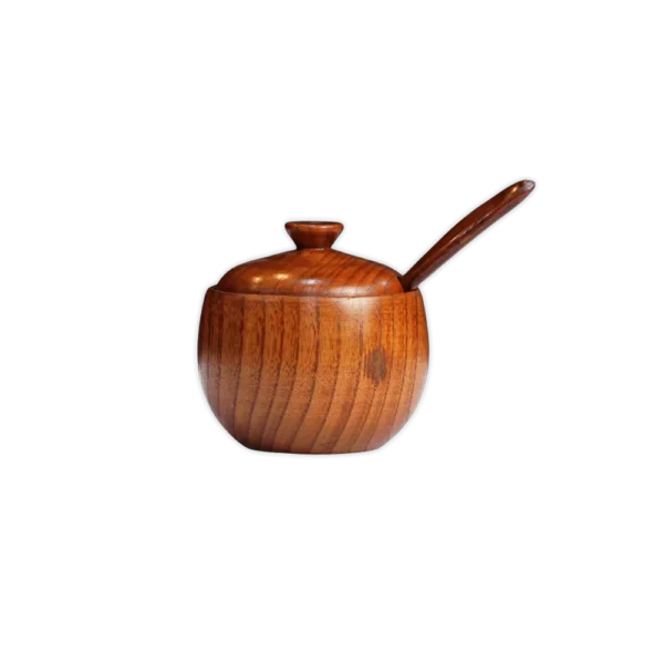 Wooen 8x9cm Round Sugar Bowl with Lid & Spoon