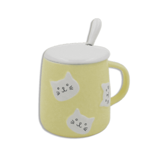 Yellow Cats Mug with Lid & Spoon